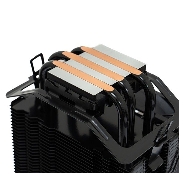 El conjunto de aletas de aluminio anodizado en negro ofrece una gran superficie para una rápida disipación del calor, mientras que tres heat-pipes de cobre de 6 mm con tecnología de contacto directo se apoyan directamente sobre el difusor térmico del CPU, permitiendo una transferencia térmica ultrarrápida. Esta combinación mantiene las temperaturas del núcleo bajo control, incluso bajo cargas prolongadas.